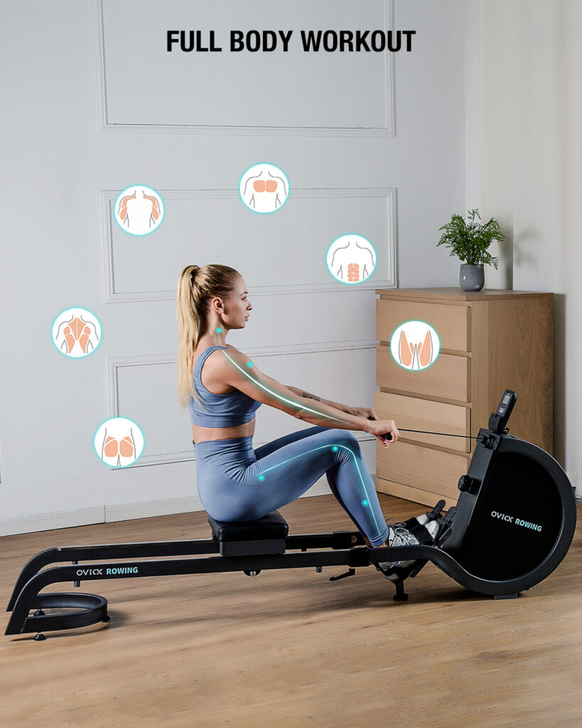 Гребний тренажер artOvicx R100 дозволяє спалювати максимальну кількість жиру під час тренування. До речі, при гребному русі використовується близько 80% загальної мускулатури тіла.
