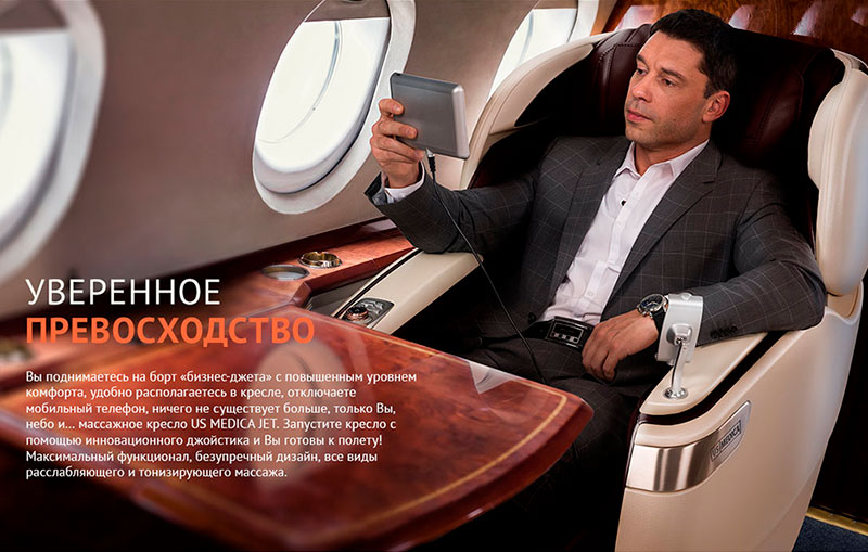 Сядьте в масажне крісло US MEDICA JET, запустіть його за допомогою інноваційного джойстика - і ви готові до унікального масажу. Комплексний підхід цієї моделі крісла до масажної процедури дозволить вам відчути фізичний і душевний спокій, призведе до енергетичного оновленню тіла.