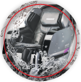 Особлива конструкція крісла в поєднанні з інноваційними матеріалами дозволили зробити масажний механізм крісла J-Line максимально стійким до навантажень.