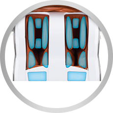 Масажний механізм J-Line забезпечує найбільш повний масаж спини, починаючи його з області шиї і закінчуючи в області стегон і сідниць. Таким широким охопленням масажу не може похвалитися жодне крісло!