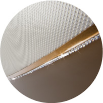 Для обробки крісла використовується два види особливо міцного і зносостійкого арпатеку в бежево-золотавих тонах, всі логотипи вишиті вручну, бічні панелі крісла прикрашають