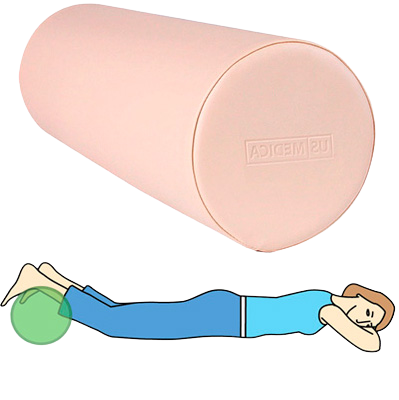 - Валик у формі усіченого кола зазвичай підкладають під гомілки для масажу спини.