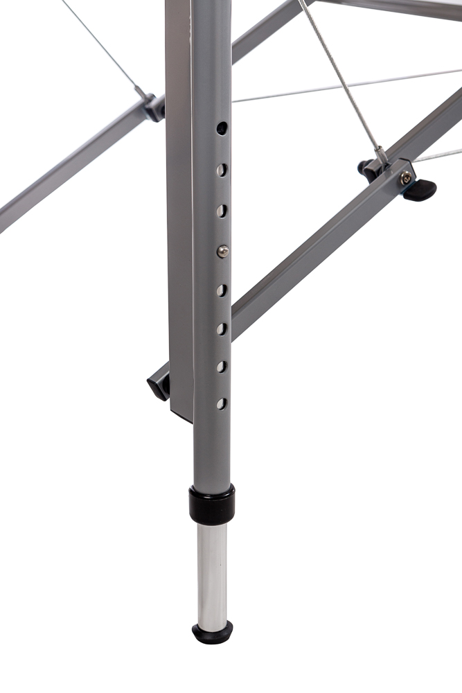 Стіл оснащений регульованою системою висоти, що дозволяє адаптувати його до потреб спеціаліста та забезпечує максимальний комфорт клієнту.