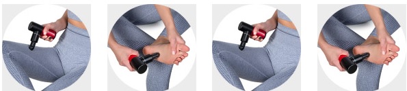 Перкусійний масажер Yamaguchi Massage Gun Mini за допомогою вібрувальних пульсацій опрацьовує тригерні точки, стимулюючи потік крові, розслабляє тіло, допомагає швидше відновитися після травм або фізичних навантажень, знімає з м'язів біль.