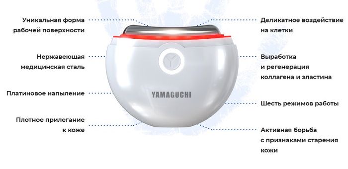 Дослідження показали, що регулярне використання приладу Yamaguchi EMS Face Lifting має позитивний ефект на зони впливу. А саме: